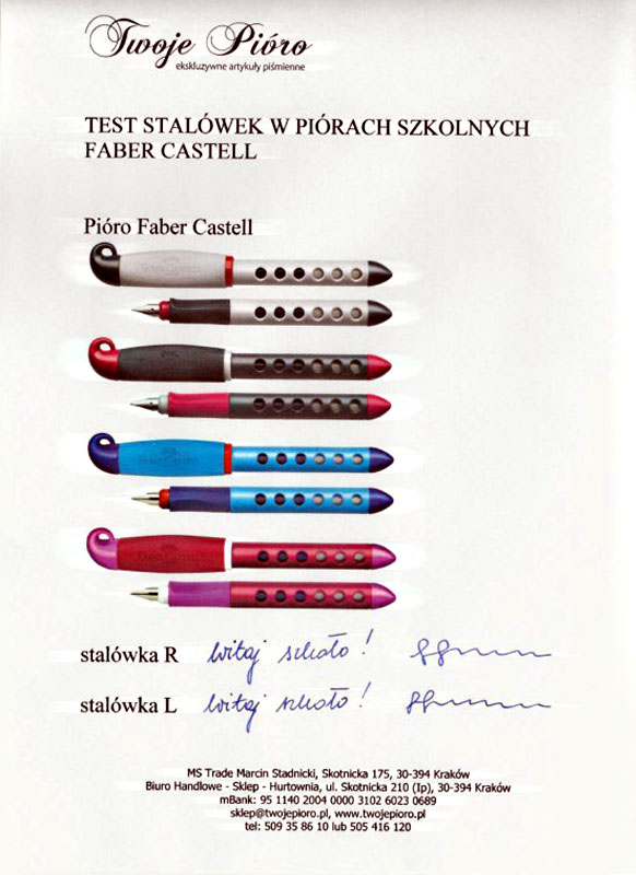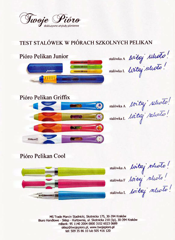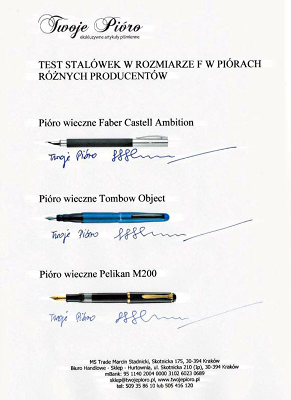 Zapraszamy do zapoznania się z testem stalówek. Choć samej treści merytorycznej jest tu niewiele, to można nacieszyć oko aspektem wizualnym. W zasadzie ważne są tu trzy kluczowe kwestie. Po pierwsze stalówka ma pasować Tobie i spełniać Twoje potrzeby, nie odwrotnie ;) Po drugie grubość stalówki choć oznaczona tym samym symbolem, nie zawsze będzie zachowywać się na papierze identycznie....a po trzecie nawet w tym samym modelu, różne egzemplarze mogą być skrajnie różne. Po prostu szukajcie - stalówki znajdziecie tu.