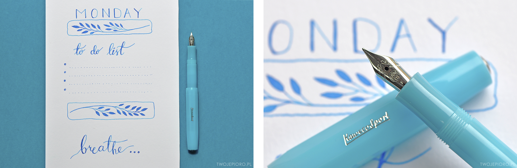 Niebieskie pióro Kaweco to idealny wybór na poniedziałek. Geometryczne, lekkie Kaweco, wygodnie leżące w dłoni i idealnie mieszczące się kieszeni będzie niezastąpione podczas poniedziałkowej bieganiny, gdy niejednokrotnie w głowie jeszcze weekendowa sielanka. To błękitne pióro Kaweco świetnie sprawdzi się w duecie z lazurowym atramentem Waterman - ażeby w ciężki początek tygodnia tchnąć jeszcze więcej harmonii i lekkości. Pisanie niebieskim atramentem uspokaja i pozwala zebrać myśli. Nie bez powodu hasło na dziś to breathe - oddychaj. Poniedziałek... :)